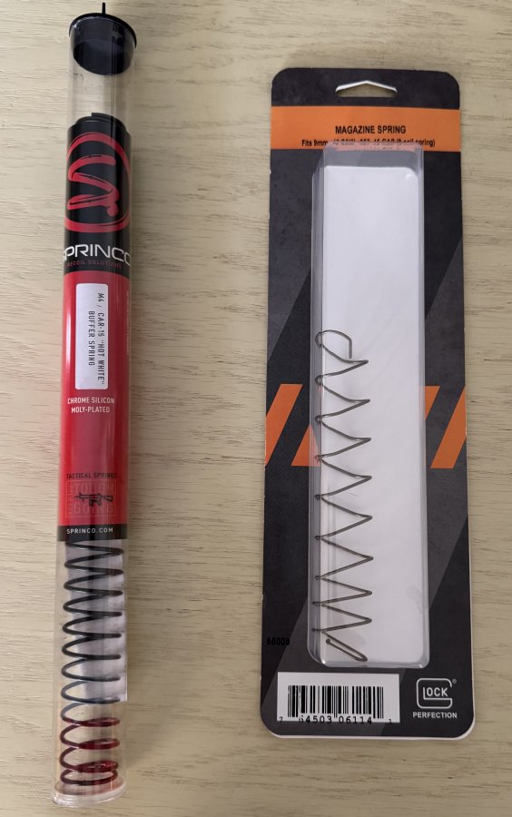 AC Unity 40 round & 2 PMAG 10 round 762x39 mags. Includes 2 followers for AC. $15 Add to above or purchase together. Sprinco WHT/HOT buffer spring. Used to test different buffer weights. $10 Glock 9mm/40sw (9 coil) magazine spring. $5