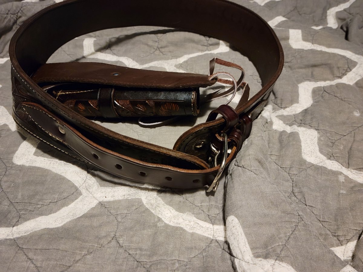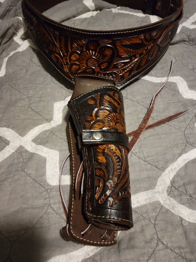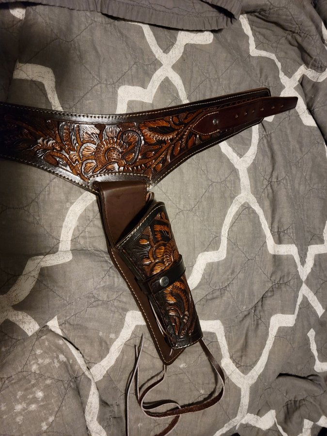 WTS $200 Handmade Tooled Leather Cowboy Belt/Holster Rig