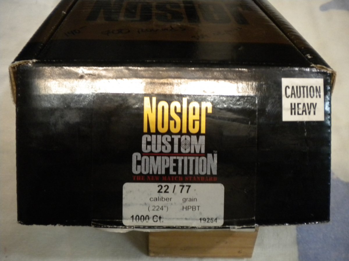 $170 for 700 bulk count of .22 caliber Nosler Custom Competition HP rifle slugs 77 grain HBPT.