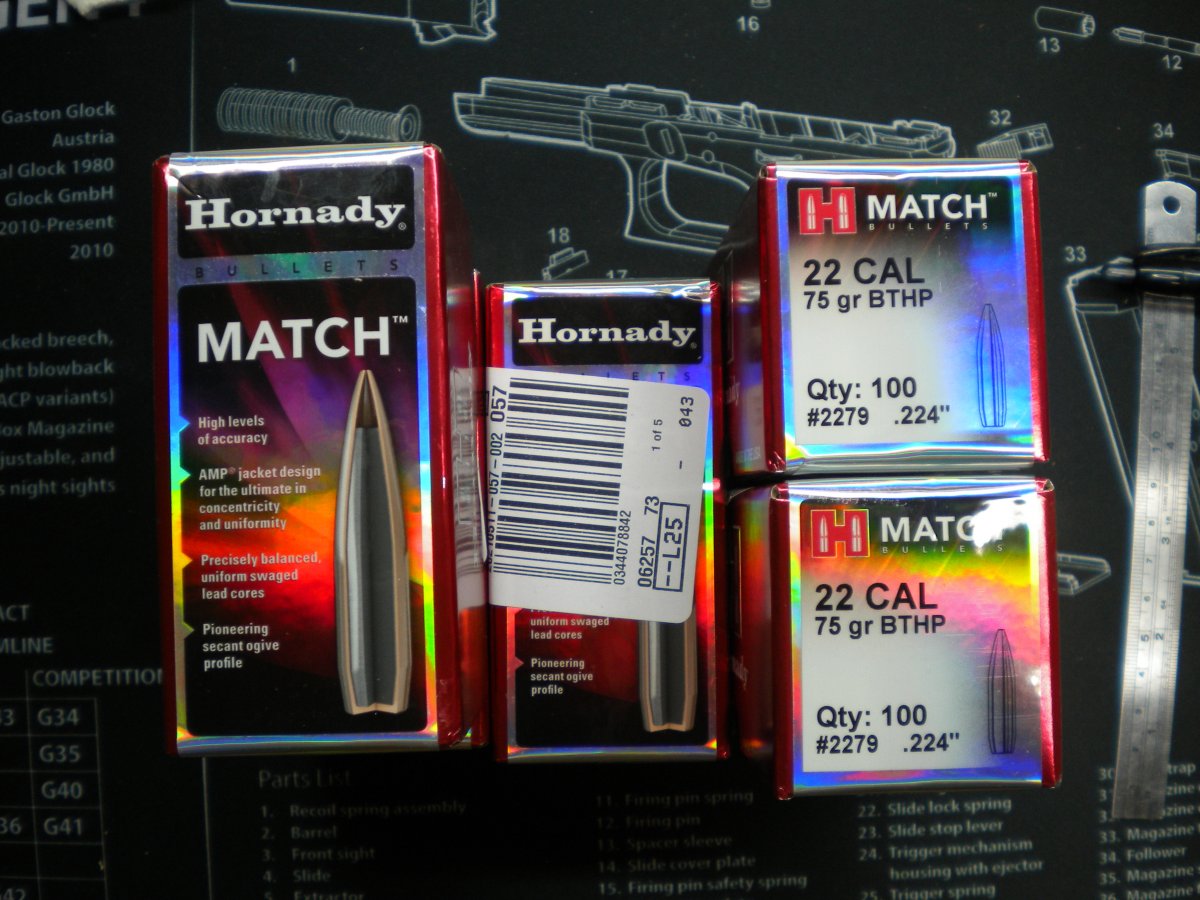 $140 for (5) 100-boxes of Hornady HPBT Match #2279 .224 dia. 75 grain rifle slugs.