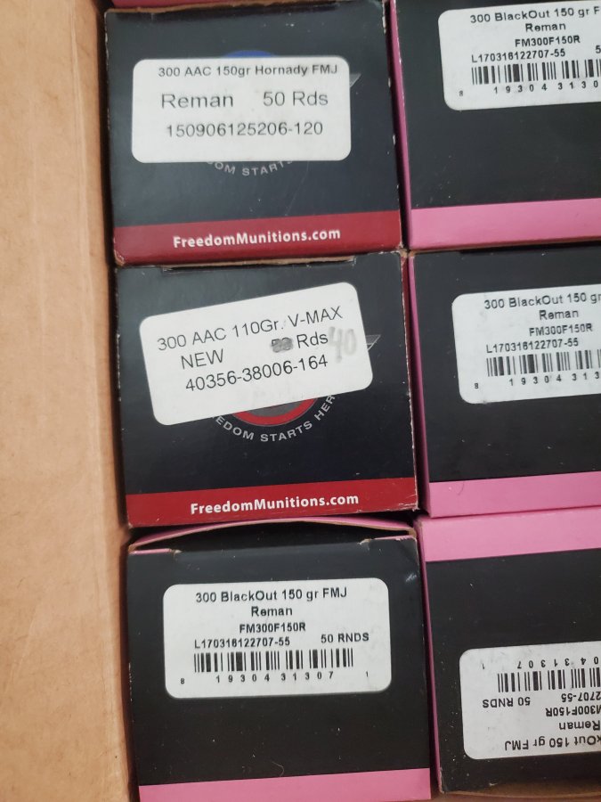 40 rounds of it is V-Max 110gr. It is Freedom Munitions remanufactured except the V- Max, it is new. I shot a lot of this with no problem through my 10.5 LMT SBR. without making any changes I put the 5.56 barrel on and it still ran like a Swiss watch. $365.00 cash price or $425 trade value. Mainly looking for a Microtech Ultratech OTF or other high end OTF knives. May also take 9mm ammo and or 5.56. Let me know what you have.