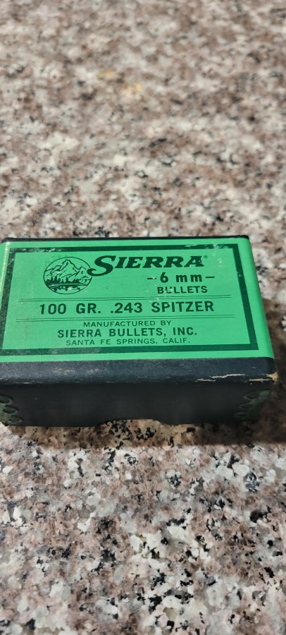 New unopened box of Sierra 6mm 100 gr. .243 Spitzer bullets. $30