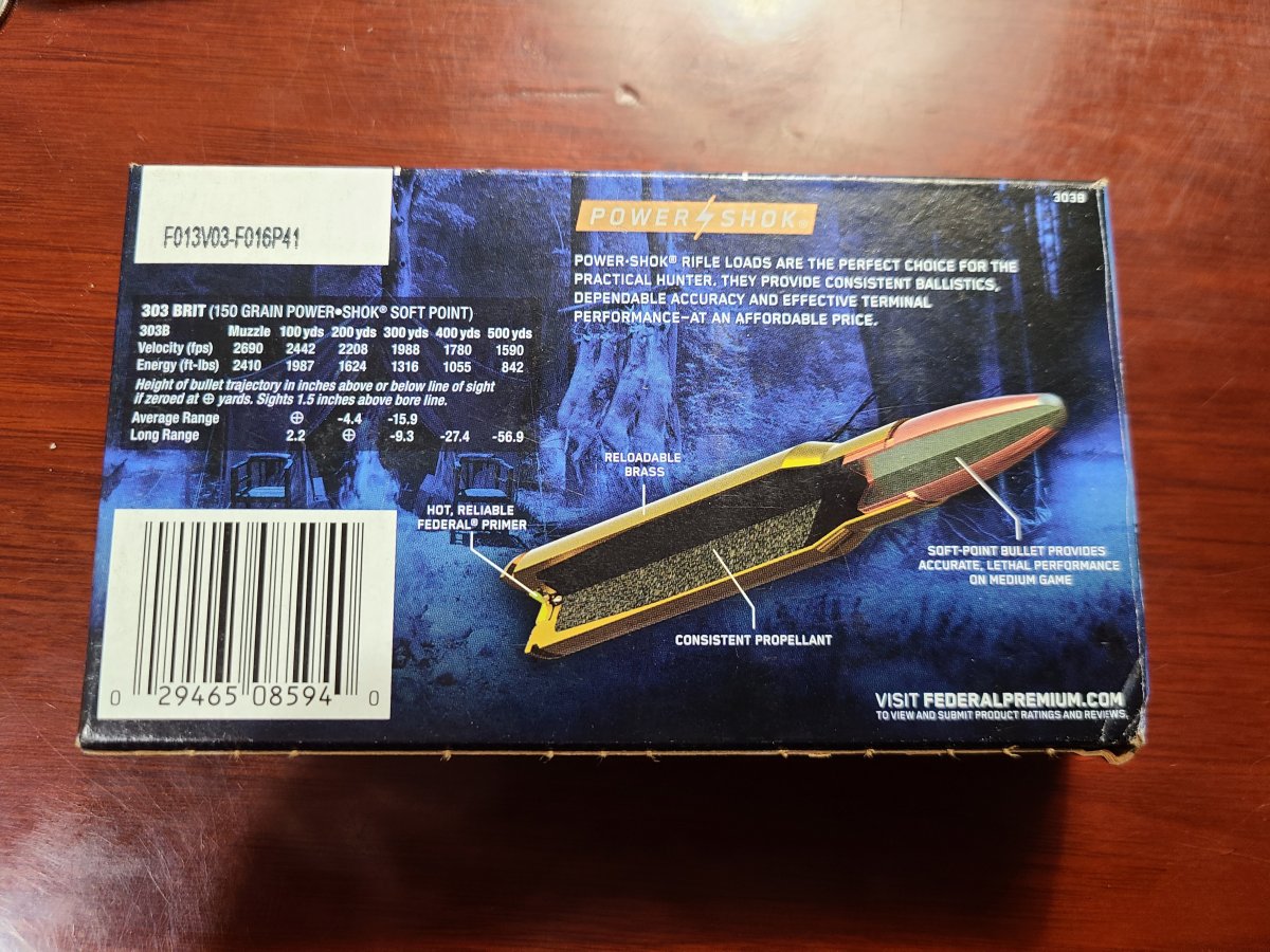 Greetings! I have a box of federal, power shok, 150 grain, .303 British ammo available. I sold my Lee Enfield so now I don't have a use for these anymore and am hoping someone here does.
