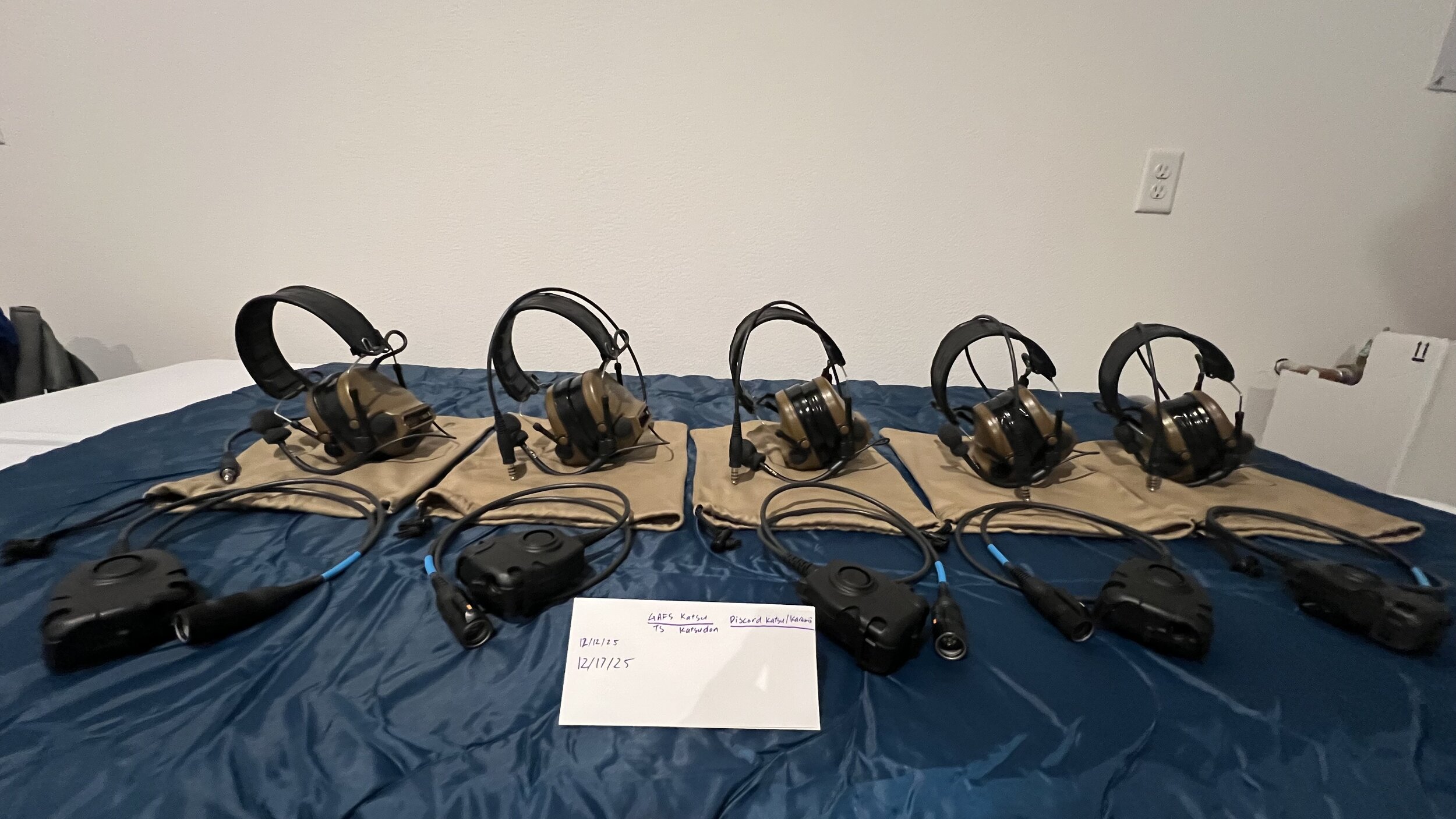 Single downlead unit including flex-boom mic, PTT, and gel ear cups. Dual downlead unit including flex-boom mic, 2x PTT, and gel ear cups. These are never worn. I can meet anywhere in the Las Vegas but am located near South Point Hotel & Casino.