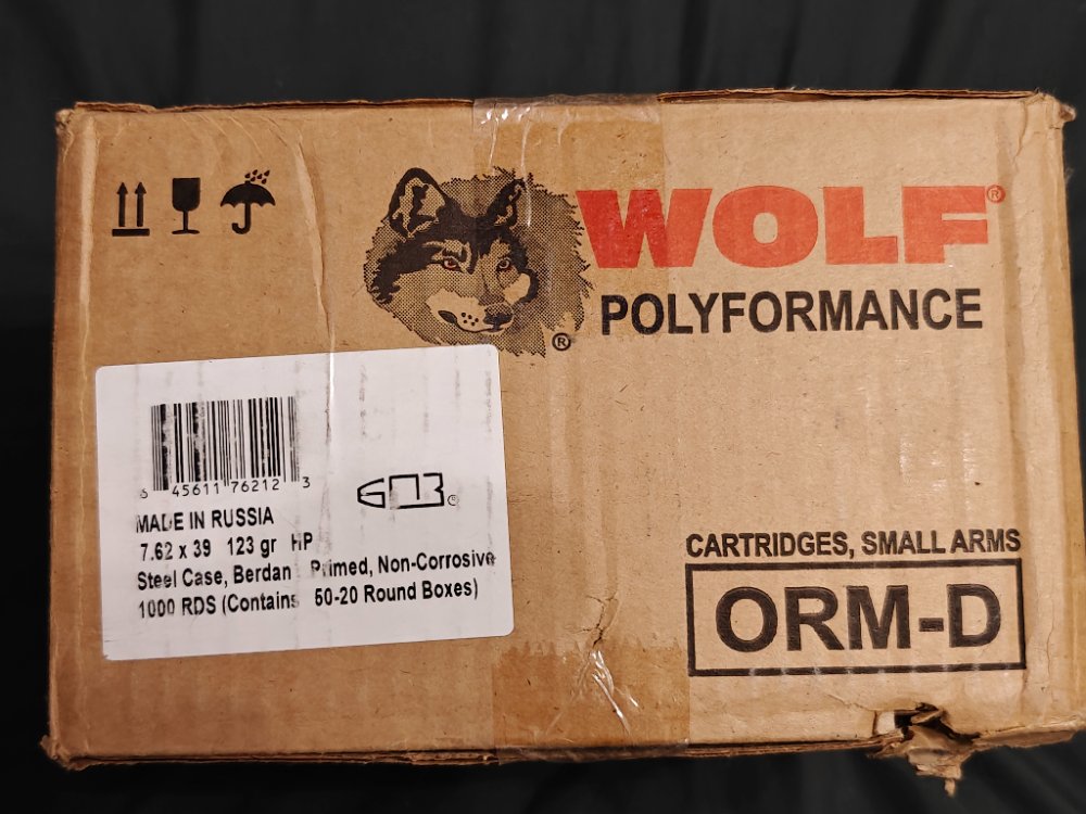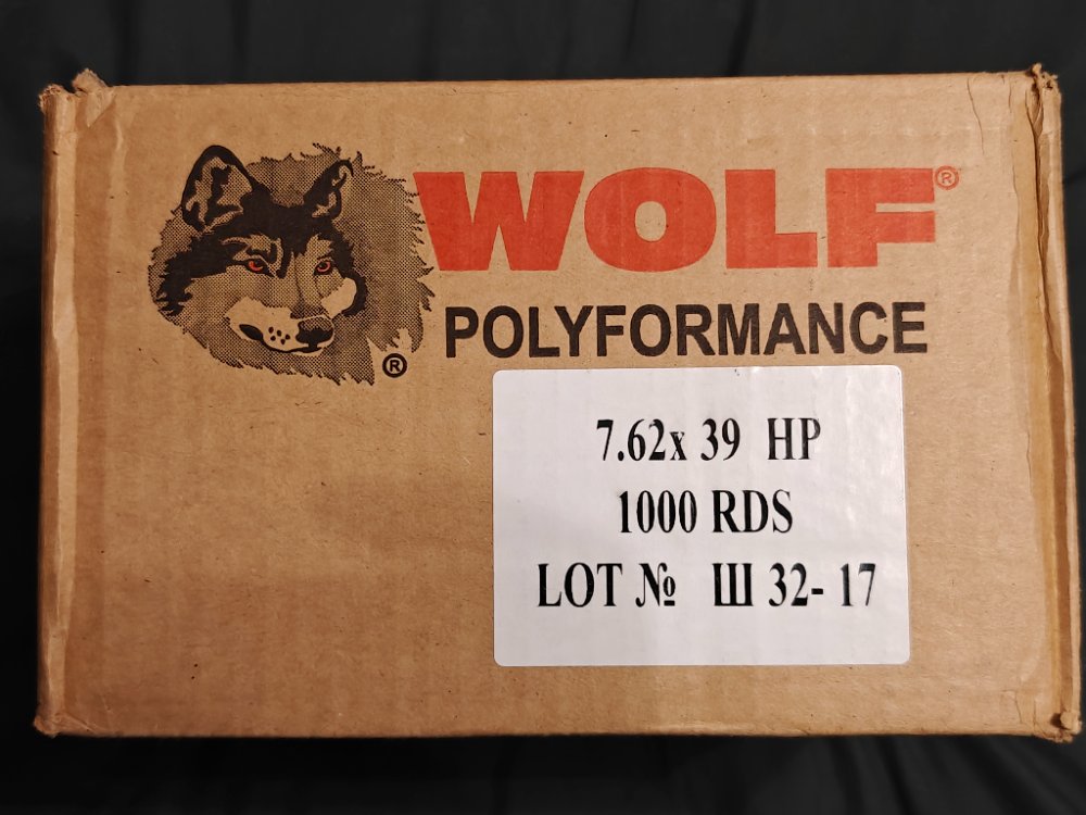 1.1000 rounds of Wolf hollow point. Bought on this forum, slight damage to box visible but otherwise unopened. $410 - Sold