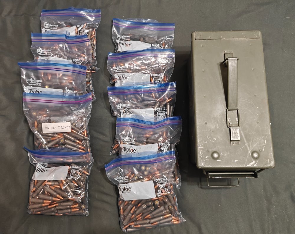 2.1000 rounds of loose/bagged Barnaul lacquered steel, picture of headstamp included. Unsure if steel core or bimetal jacket, either way it fails magnet test. Also bought on this forum, it's been sitting in a closet until now. $375, includes ammo can. - Sold
