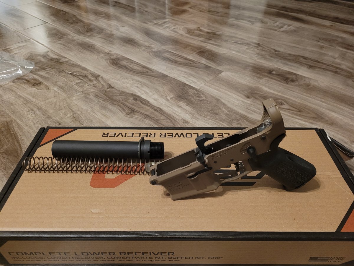 For sale is an Aero Precision M4E1 FDE complete lower. Comes with everything EXCEPT the stock/brace. Less than 100 rounds. $200 or best reasonable offer. No trades