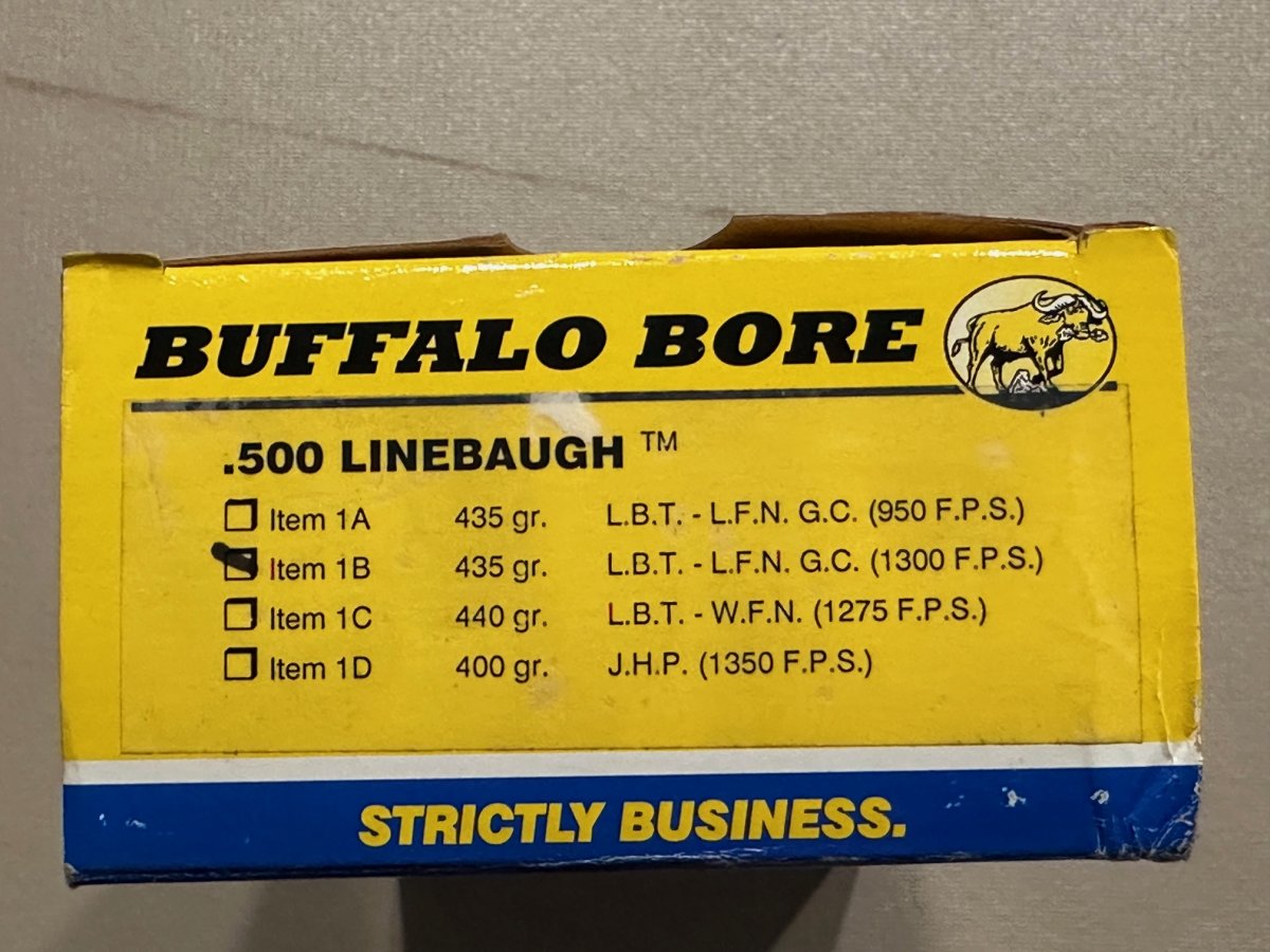 Three boxes of Buffalo Bore .500 Linebaugh $150.00 each box