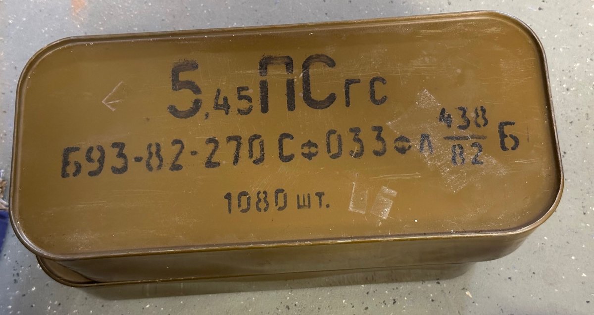Two sealed spam cans of 7n6 5.45x39 (you'll need an opener) 1080 rounds each. $500.00 each can.
