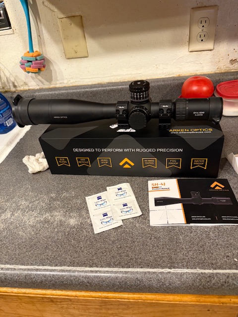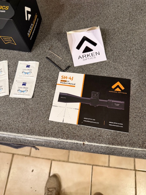 Included, original packaging, owners manual, wrenches for scope mounts, turrents & zero stop. Arken sticker. 4 Zeiss cleaning wipes. 34mm scope mounts. Front & rear scope covers. Sunshade.