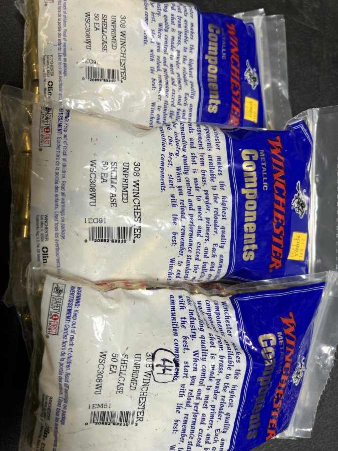 Selling 494 new winchster 308 large primer brass. ( 9 bags are still sealed and one been open ). $190 shipped or $175 FTF