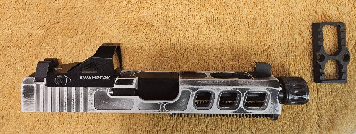 I have this custom Glock slide for a G19 Gen 3. Less than 50 round fired. Does not include the Swampfox as that was sold to another member.