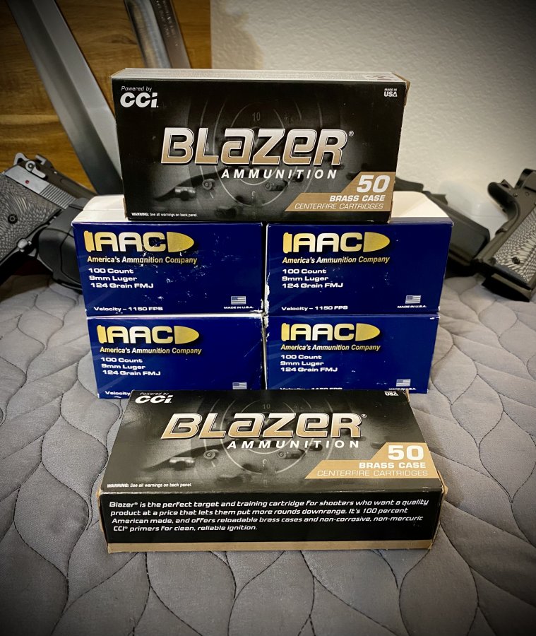 9MM 124 Grain FMJ AAC (400 Rounds) and Blazer Brass (100 Rounds), $0LD