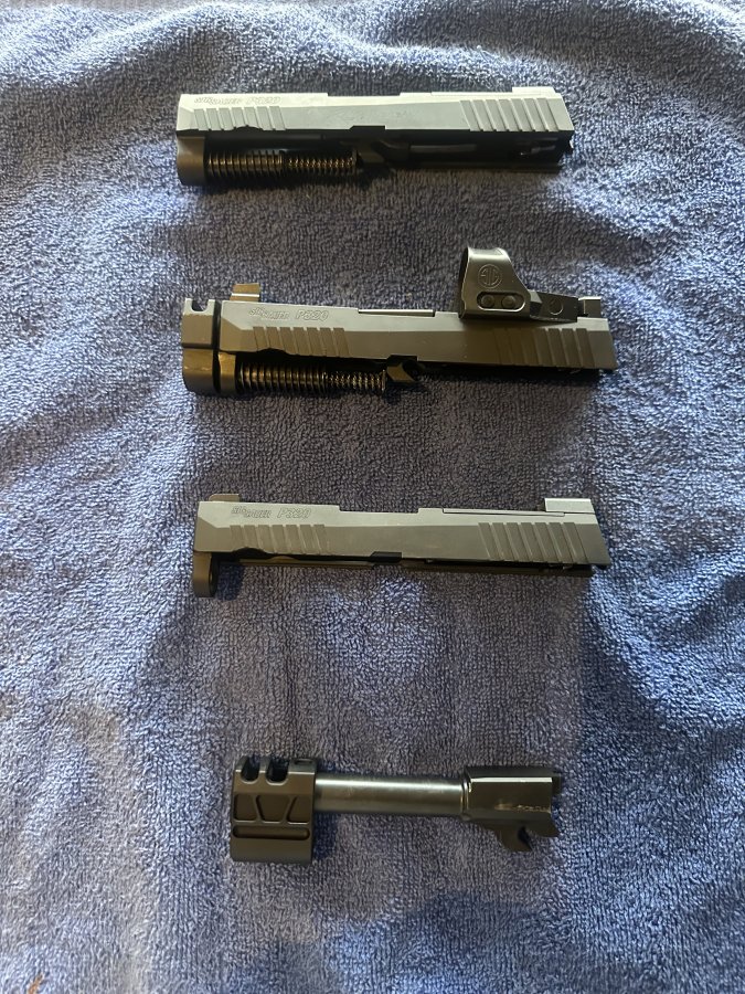 Up for sale I have 3 P320 slides and a barrel comp combo.