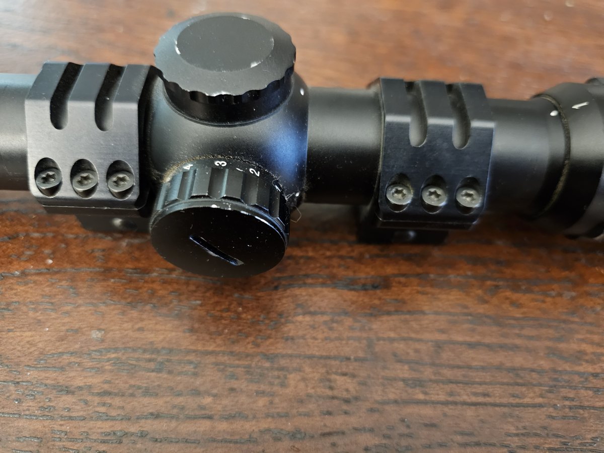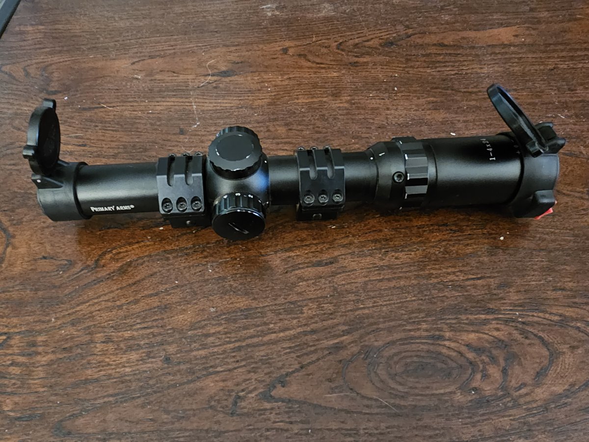 $100 - Primary Arms Classic 1-4x24 illuminated reticle. Rings (unlabeled) and Butler Creek caps included.
