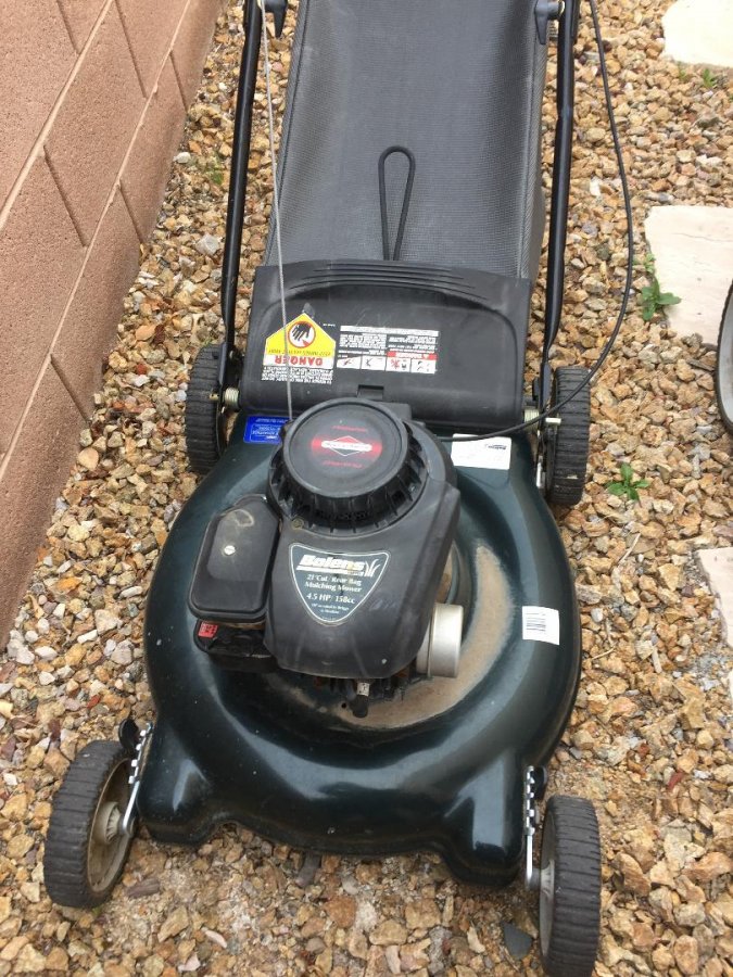 I have two gas lawnmowers I would like to give away. They both run well. I live in Paradise Hills. Rear bag.