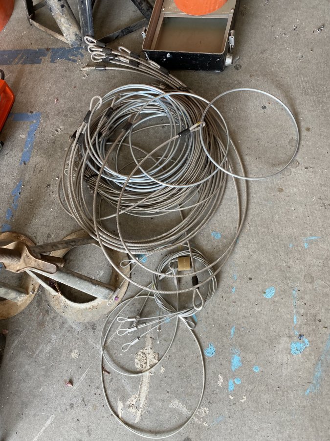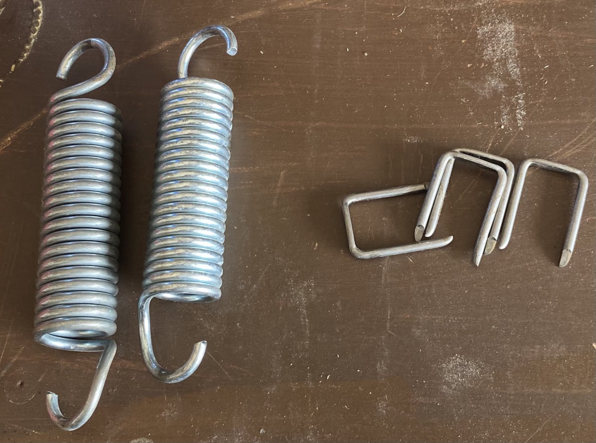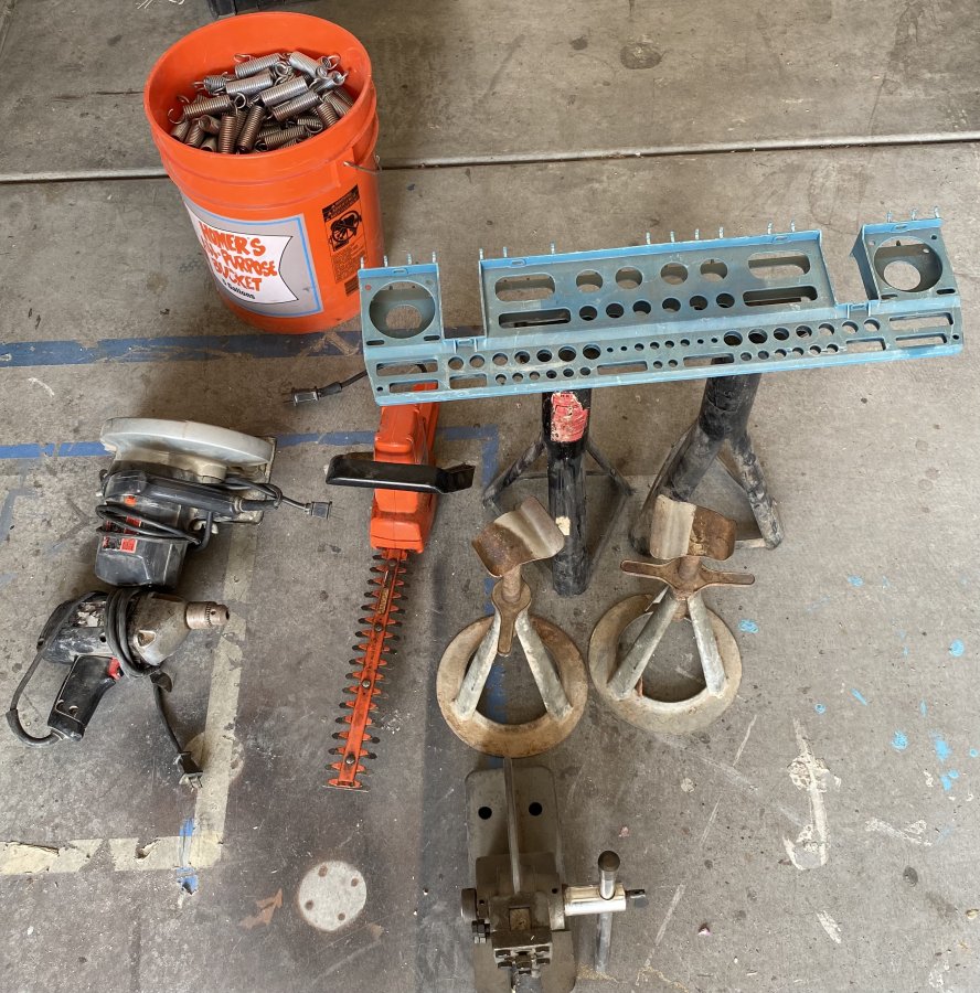 Bucket is mostly filled with 1” cable staples and some springs from a trampoline thrown on top for good measure.