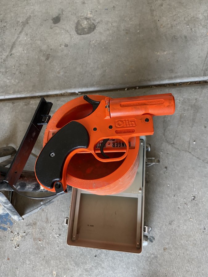 EDIT: Items added. Steel cable old military volt/ohm meter and flare gun. (If ya have one of these ya might not lose all your guns in the next boating accident!)