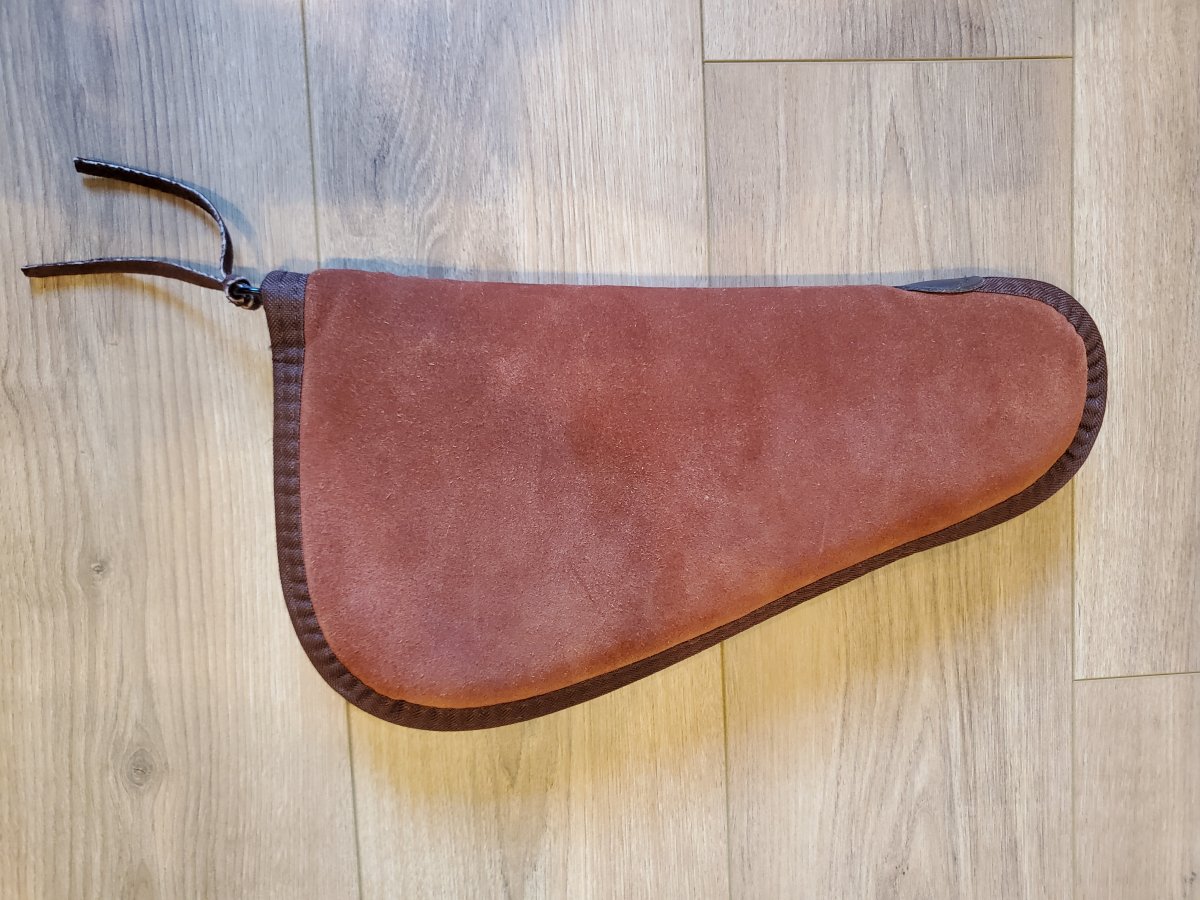 Small vintage leather rug in like new condition with Sherpa lining (dark area is a shadow). Perfect for a S&W Chief's Special or similar sized Pistol.