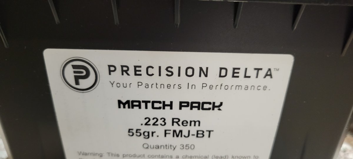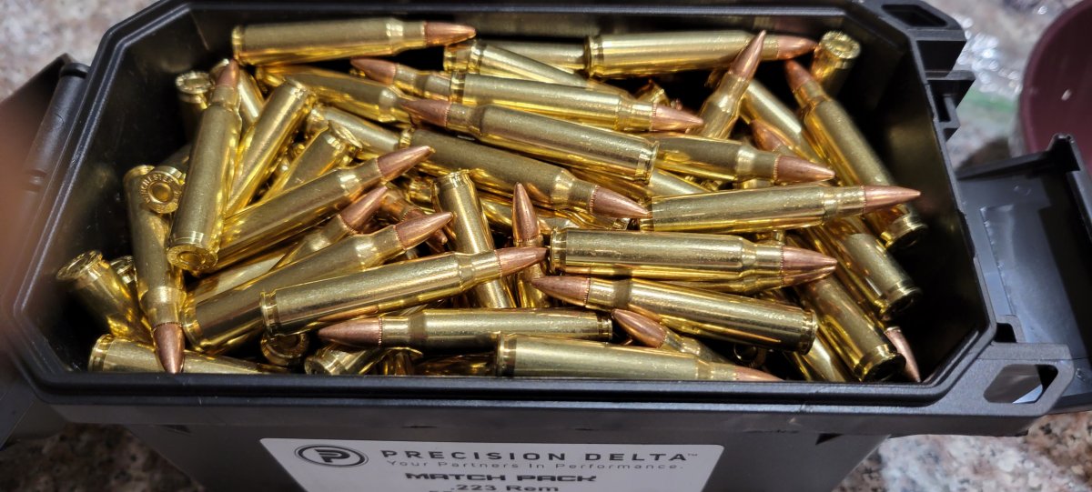 300 rounds brass .223 Precision Delta reloads. Great shooting ammunition. Will include ammo can. Can says 350 rounds, there are only 300 in there.