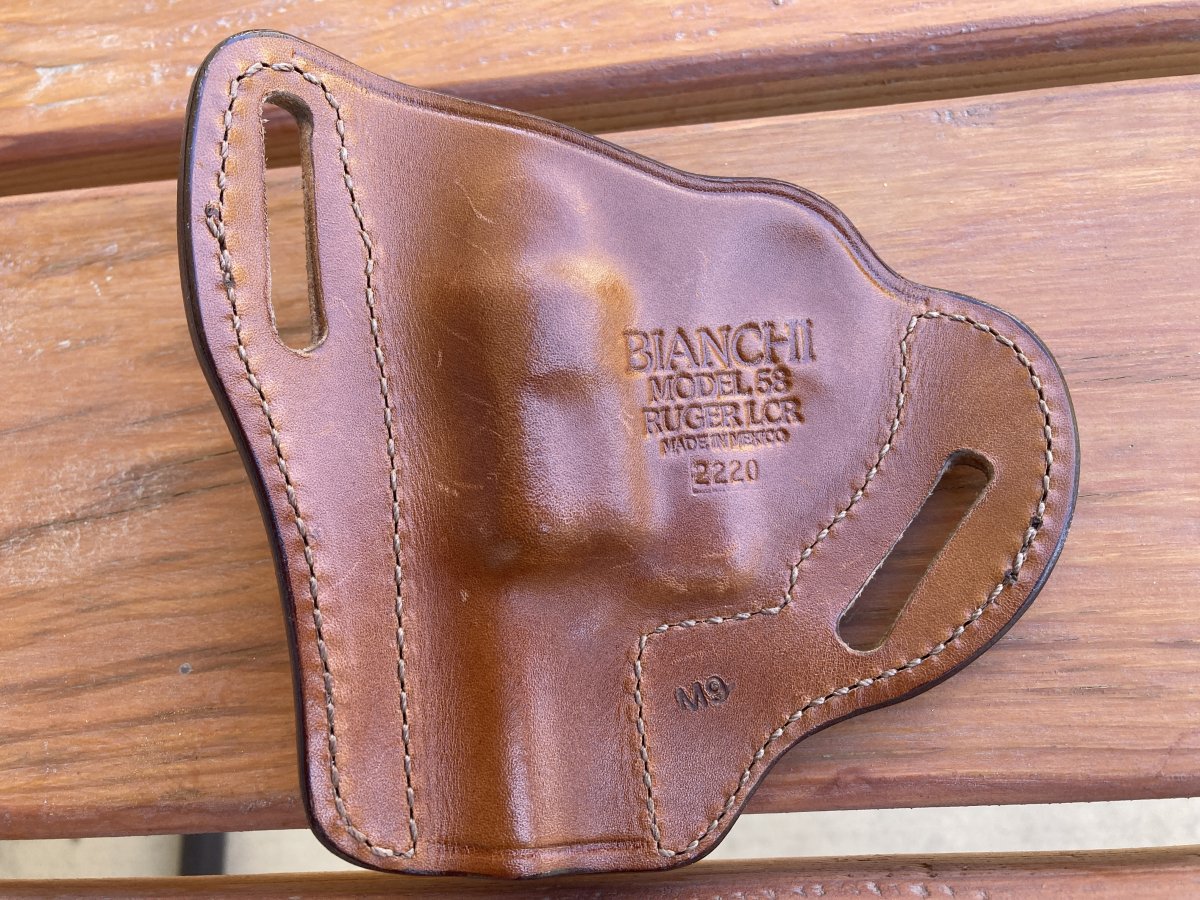 1) Bianchi PI holster (OWB) for Ruger LCR and LCRx. Broken in, and then worn once or twice. Leather is till very stiff. It fits the .38 special model, but may also fit others.
