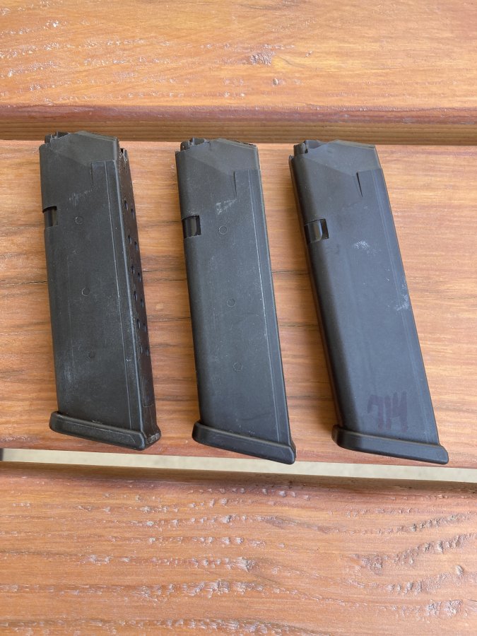 2) Three (3x) Glock 15 round .40 S&W magazines. Used, but clean and good to go.