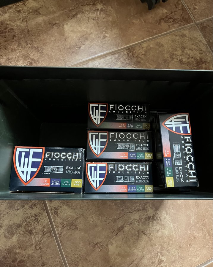 -Fiocchi 12 gauge slugs. These are considered “low recoil” and are very mild to shoot compared to other slugs. 13 boxes of 10 (130 slugs). Ammo can not included.