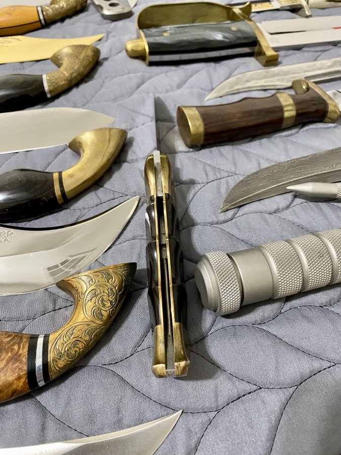 More miscellaneous knives from the collection to make space. $400 for the lot. A few of the knives within is more than asking price. Beaver USA/Iron Mountain Stinger Knives, Gerber Touché, Buck Kalinga & 119 Ducks Unlimited, Boker Titanium Titan, Butterflies, Handmade Damascus and File Knives, etc…