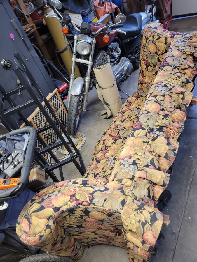 I've never sat on it in my life. I've never bought a couch in my life. So when stuff is given to me, I just move it along if I can. And you'll never believe this, but JTW nailed it. I stripped it yesterday for the fabric.